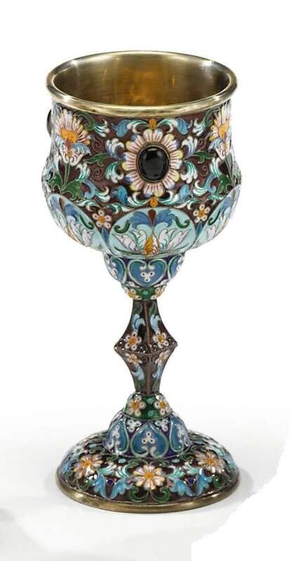 Russian silver and enamel goblet marks for faberge
