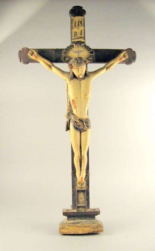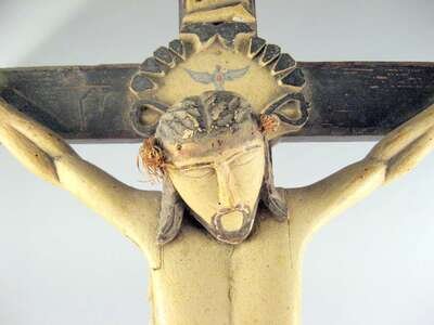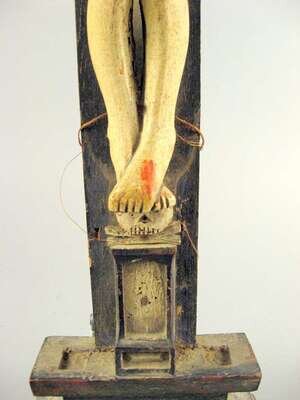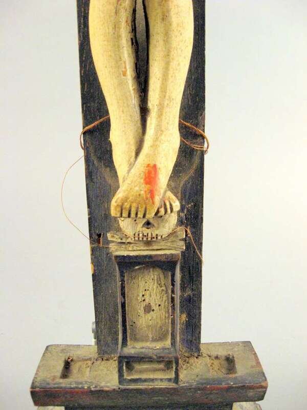 Large Spanish Colonial carved and polychromed crucifix 19th century