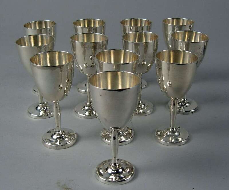 Set of twelve Mexican sterling silver cordial cups juvento lopez reyes, mid 20th century