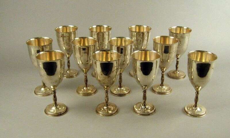 Twelve sterling silver Mexican water goblets juvento lopez reyes, 20th century