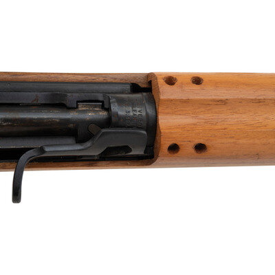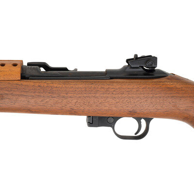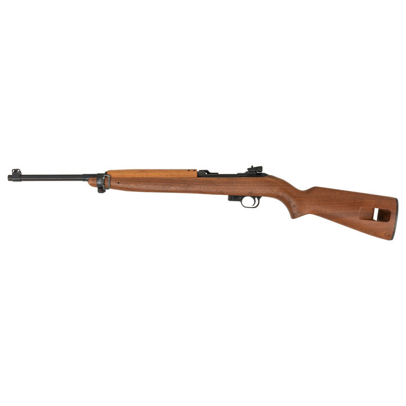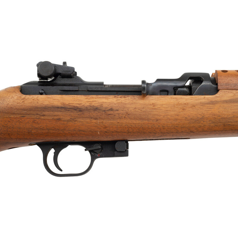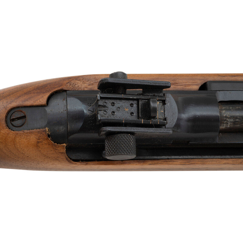 .30 Carbine. 18" barrel length. SN: 197365. Blued metal finish overall mounting semi wood semi pistol grip stock and exhibiting the simplified trigger plate and externally visible cam charging handle designs typical of later Universal M1 Carbines. Short stroke piston driven gas operated semi-automatic rifle fed by detachable box magazines. The barrel shank is marked UNIVERSAL/HIALEAH, FLA./PAT. 3.382.766. Comes with no magazine.