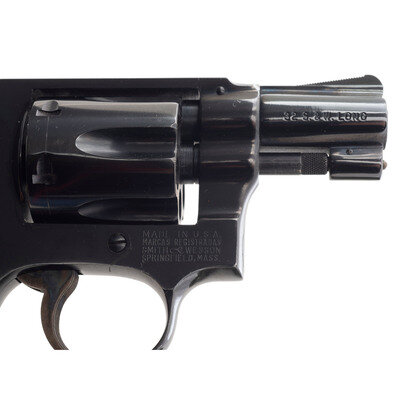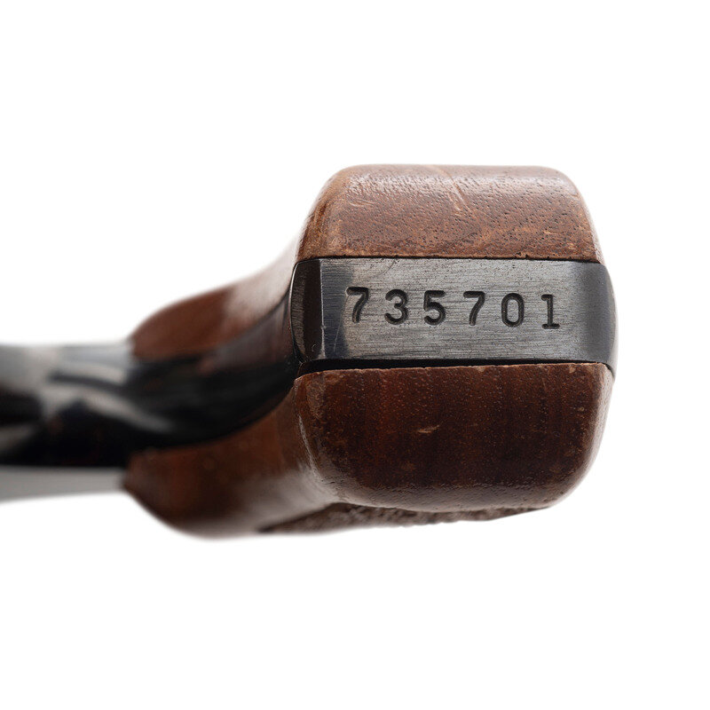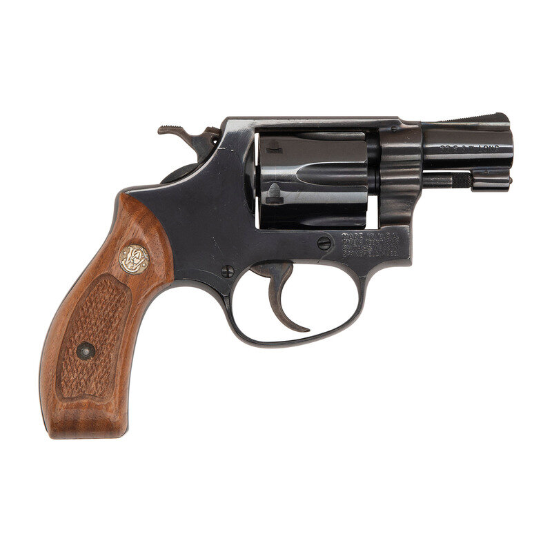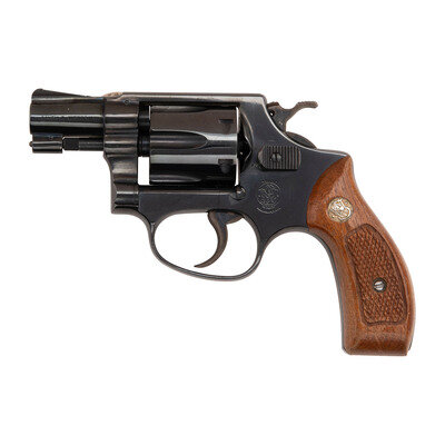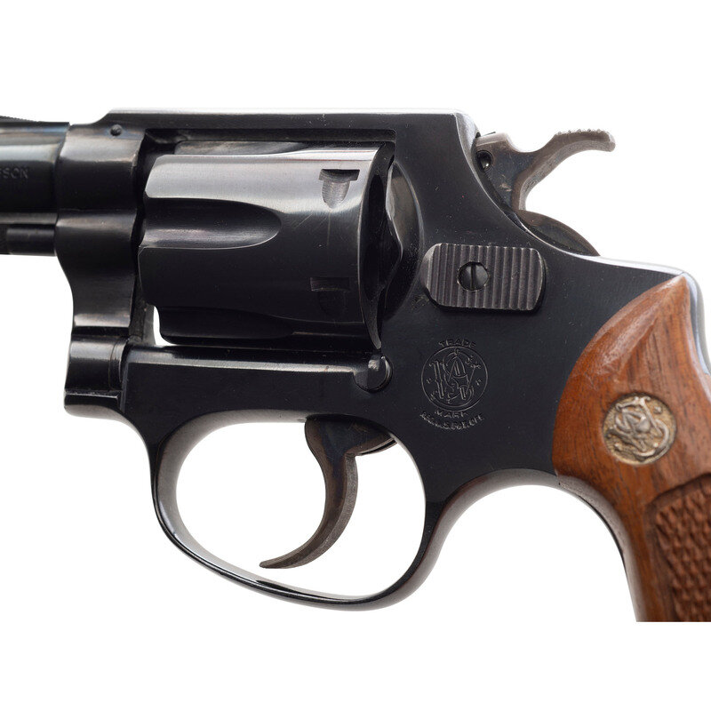 .44 Magnum. 6.5" barrel length. SN: N413085. Blued metal finish with casehardened hammer and trigger mounting checkered Goncalo Alves Smith & Wesson medallion grips. Double action hand ejector six-shot revolver featuring a pinned barrel and recessed cylinder on a three screw frame. Item mounts adjustable rear target white outline notch and red plastic insert matted front ramp sights. Further mounts a wide target trigger and hammer. Item features standard make and model markings overall along with a matted barrel rib. Comes in a wood case with blue felt lining with accessories including: cleaning rod, screwdriver, bore mop, bore brush, and the owner's manual with inserts.