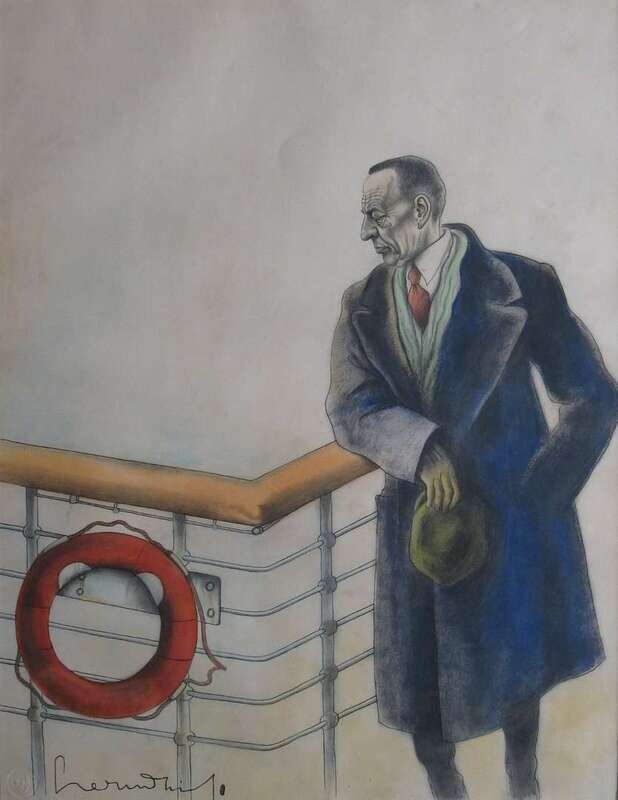AMERICAN SCHOOL (20TH CENTURY) MAN BY THE RAILING