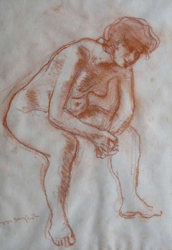 MOSES SOYER (AMERICAN 1899-1974)THREE WORKS ON PAPER SEATED NUDE