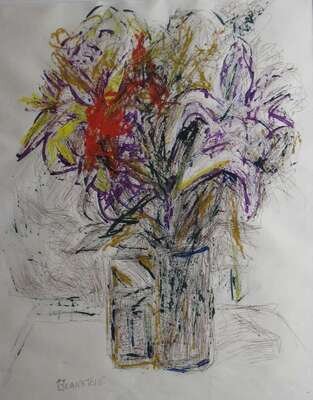 THERESA BERNSTEIN (AMERICAN 1890-2002) LILIES IN TWO DRINKING GLASSES