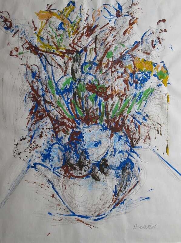 THERESA BERNSTEIN (AMERICAN 1890-2002) STILL LIFE WITH TEAPOT AND FLOWERS