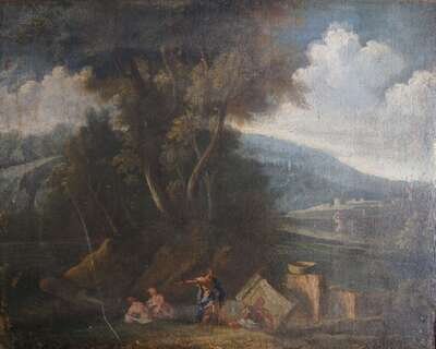 CIRCLE OF L'ORIZZONTE (18TH CENTURY) LANDSCAPE WITH FIGURES AND RUINS
