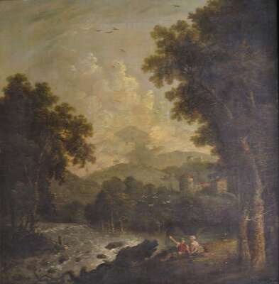 CONTINENTAL SCHOOL (18TH - 19TH CENTURY) LANDSCAPE WITH FIGURES AND CASTLE
