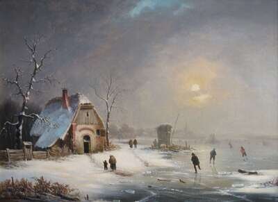 VAN ZEEBROECK (DUTCH 19TH CENTURY) SKATERS ON A FROZEN POND