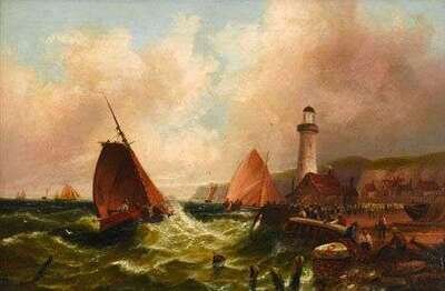 and "FISHING BOATS RETURNING TO HARBOR"