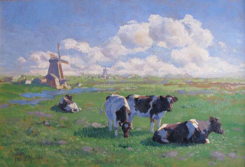 JOHANNES WILHELM VAN DER HEIDE (DUTCH 1878-1956) COWS WITH WINDMILL