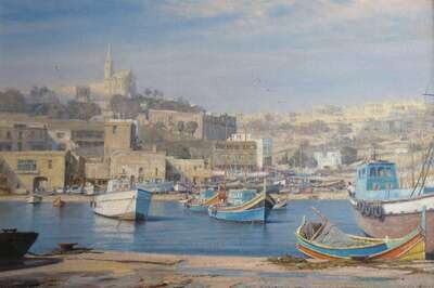 KENNETH DENTON (AMERICAN B. 1932) "MGARR HARBOUR, GOZU MALTA"