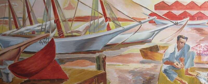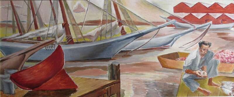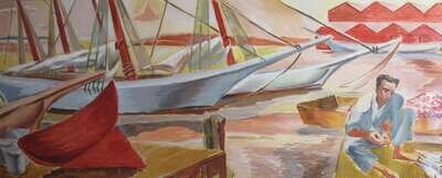 DOROTHY VAN LOAN (AMERICAN 1904-1999)TWO HARBOUR SCENES FISHERMAN BY THE DOCKS - SELBYVILLE, DELAVARE