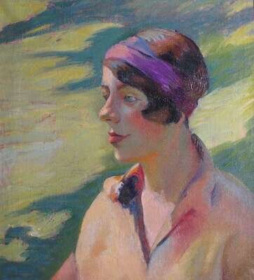 DOROTHY VAN LOAN (AMERICAN 1904-1999) PORTRAIT OF A WOMAN WITH PURPLE SCARF