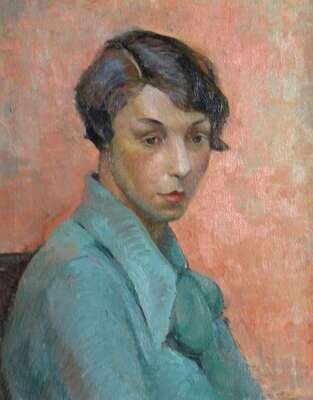 DOROTHY VAN LOAN (AMERICAN 1904-1999) PORTRAIT OF A WOMAN WITH TURQUOISE SHIRT