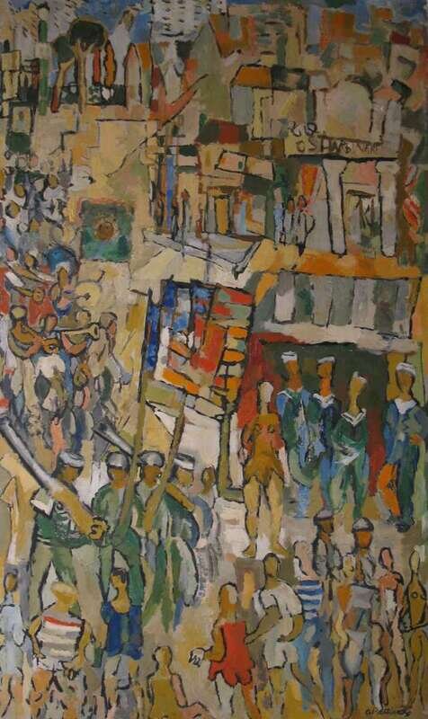 ABBOTT LAWRENCE PATTISON (AMERICAN 1916 - 1999) BUSY STREET SCENE