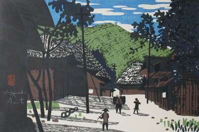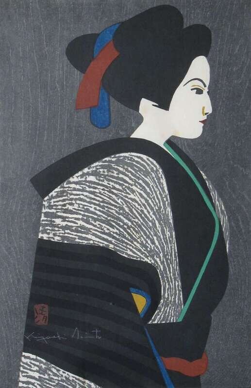 TWO COLOR WOODCUTSKIYOSHI SAITO (JAPANESE 1907-1992) "SHIN HANGA OBAN TATE E" YOUNG WOMAN IN PROFILE