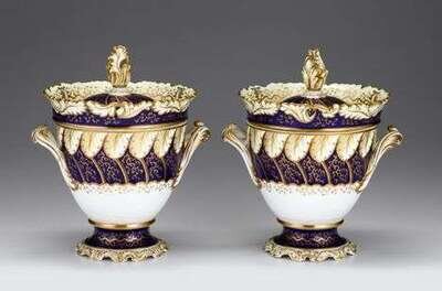 Pair of English porcelain fruit coolers 19th century, probably coalport