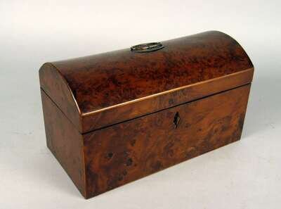 English burl walnut tea caddy 19th century