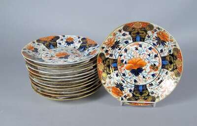 Twelve Derby 'Imari' pattern porcelain dinner plates early 19th century