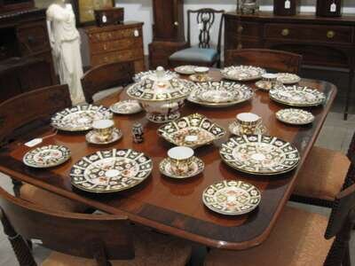 Comprising 12 dinner plates, 12 luncheon plates, 12 side plates, 12 teacups and saucers, a large soup tureen, a platter, two serving dishes and a salt; each decorated in the typical Imari palette. (65).