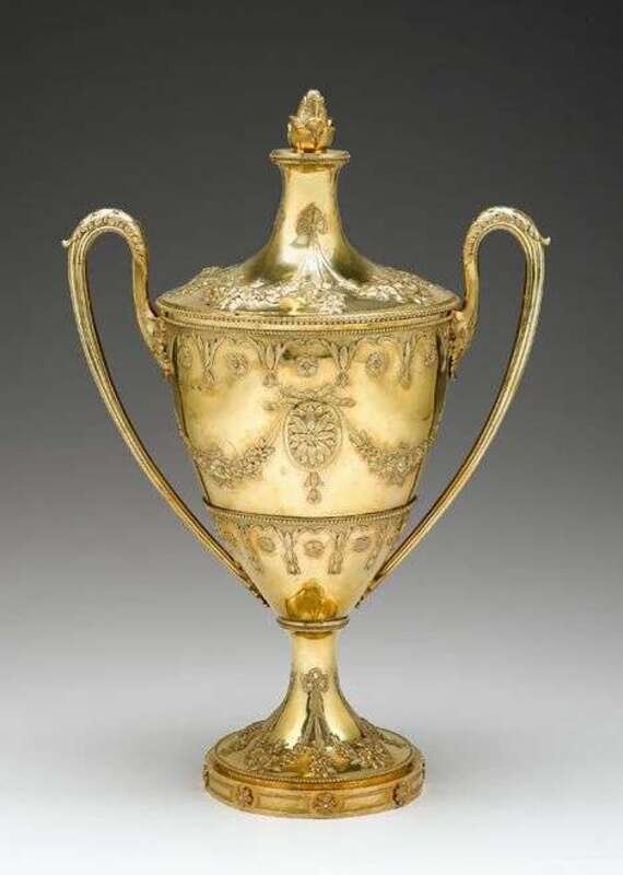 Impressive George III neoclassical sterling silver-gilt cup and cover george smith, london, 1780