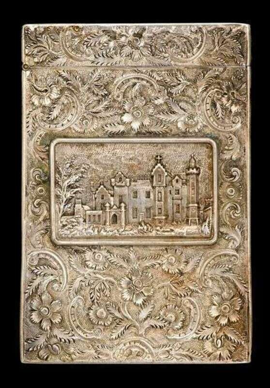English sterling silver 'castle top' card case taylor & perry, birmingham, 1835