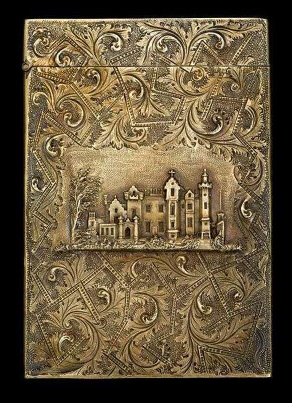 English sterling silver gilt 'castle top' card case taylor & perry, birmingham, circa 1835