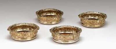 Set of four George IV sterling silver wine coasters young & co., sheffield, 1827