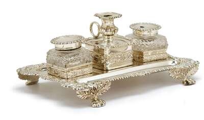 George IV sterling silver inkstand thomas & john settle, sheffield, 1829