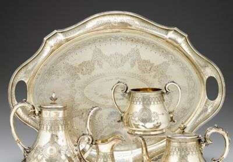 Victorian sterling silver serving tray walker & hall, sheffield, late 19th century