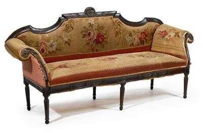 Italian carved walnut and needlework settee late 18th century/ early 19th century