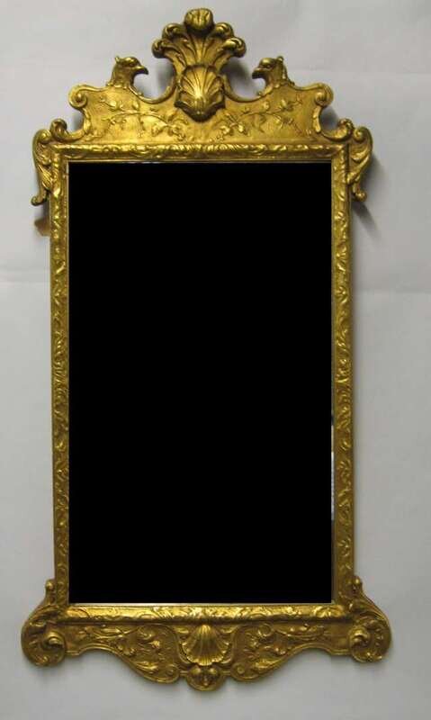The beveled rectangular plate surmounted with shell and twin eagle head cresting over a foliate molded edge.