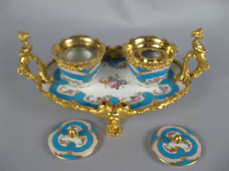 Sevres style porcelain and gilt bronze mounted encrier 19th century
