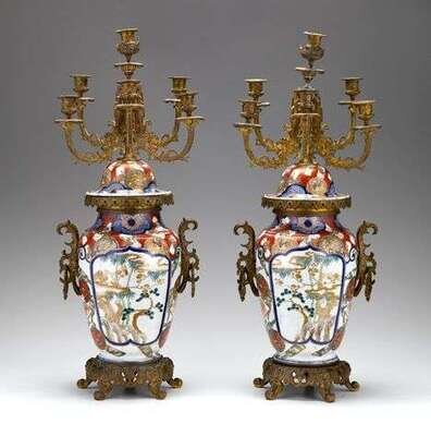 Good pair of Japanese Imari porcelain and French gilt bronze mounted candelabra 19th century