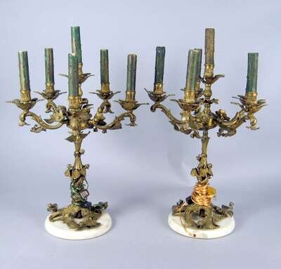 Pair of Louis XV style gilt bronze six-light candelabra