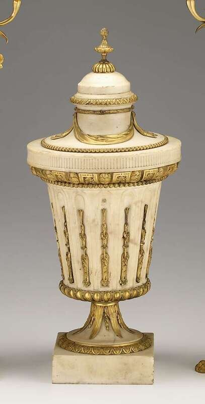 Louis XVI gilt bronze mounted white marble covered urn late 18th century
