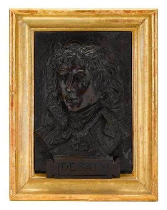 Cast in high relief depicting a male bust over panel inscribed '1768-1800 Desaix', in a gesso and gilt frame.