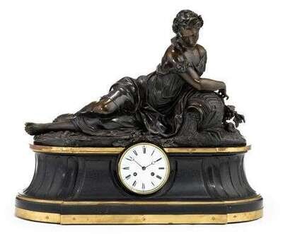 Large and impressive French patinated and gilt bronze clock charpentier et cie bronzier, rue charlot, paris, late 19th century