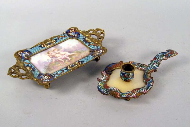 Two French gilt metal mounted cloisonne enamel desk articles 20th century