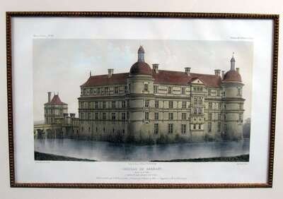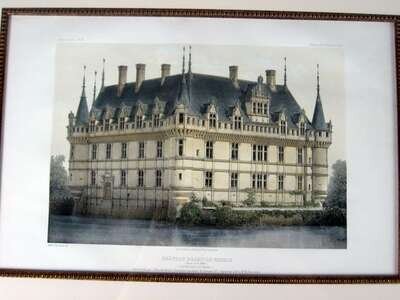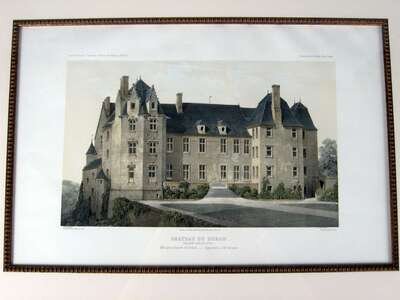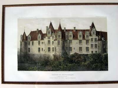 Eight hand-colored lithographs of French chateaux petit, paris, 1856