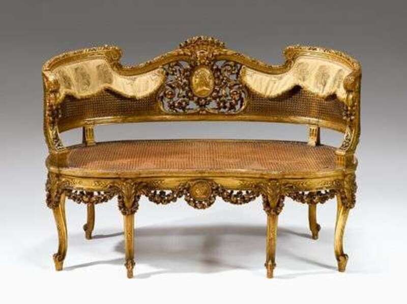 Louis XV style giltwood, cane and upholstered canapé late 19th/ early 20th century