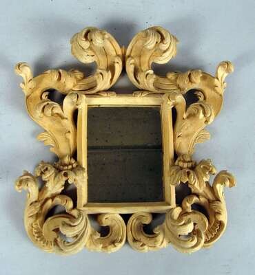 Miniature Venetian carved limewood mirror