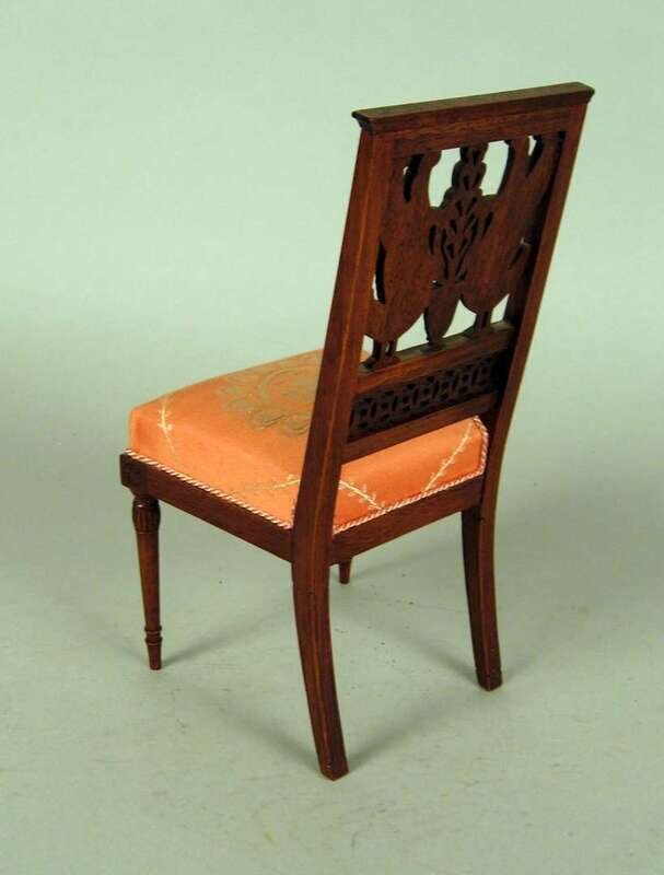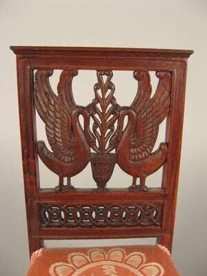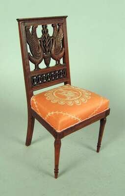 The square back carved with swans and anthemion over a cushioned seat raised on tapered forelegs and square back legs.