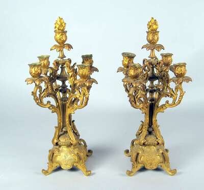 Pair of Louis XV style gilt bronze five stem candelabrum late 19th century
