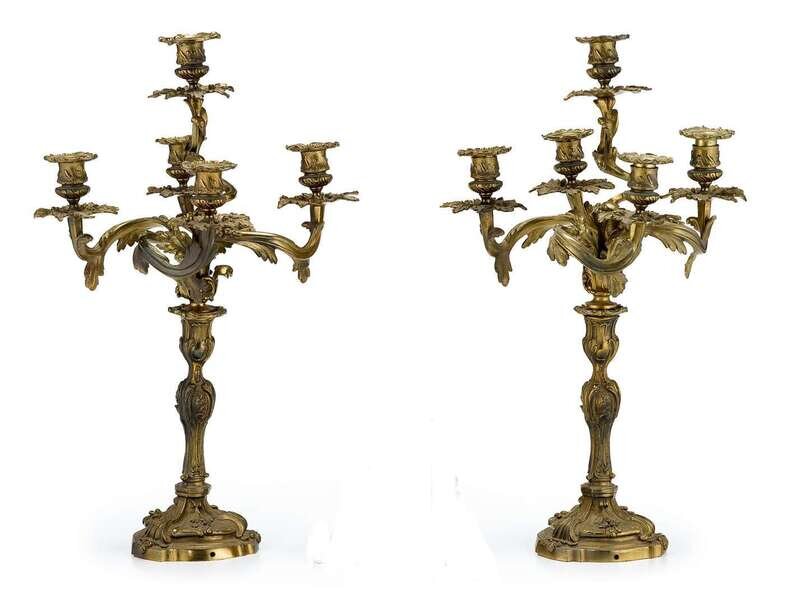 Pair of Louis XV style five-light gilt metal candelabra early 20th century