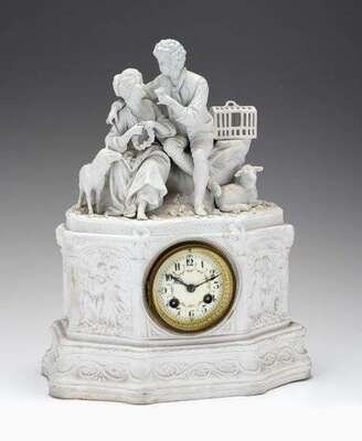 French white bisque and gilt bronze mounted mantle clock late 19th century