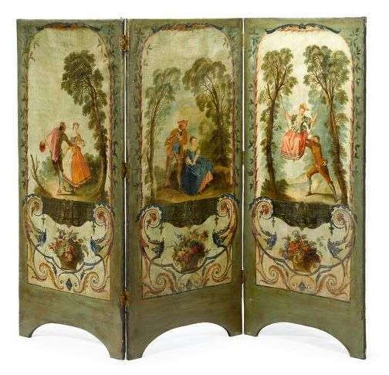 Louis XV style painted 3-panel floor screen