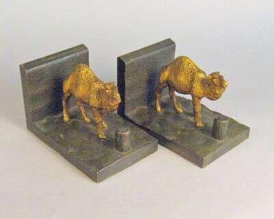 Pair of Continental gilt and patinated bronze bookends probably austrian