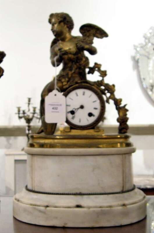Restoration gilt bronze and white marble mantle clock 19th century